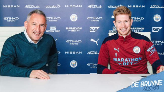 德布劳内已经和曼城续约两年,新合同将保证他至少在曼城效力至2025年。