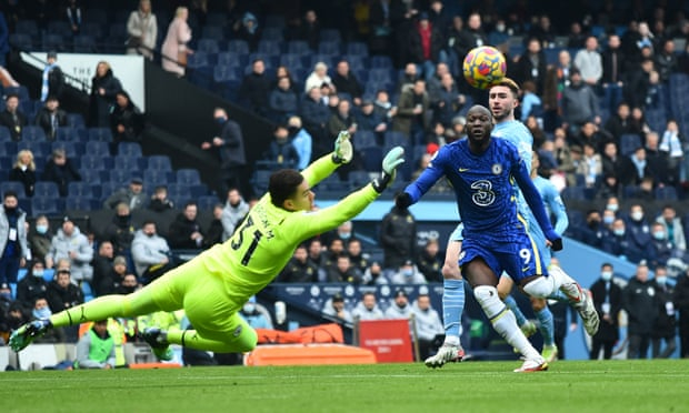 下半场。科瓦契奇直传,卢卡库禁区前单刀射门被扑出,齐耶赫禁区左侧补射打高。德布劳内左路25码处任意球直接射左上角被凯帕扑出。