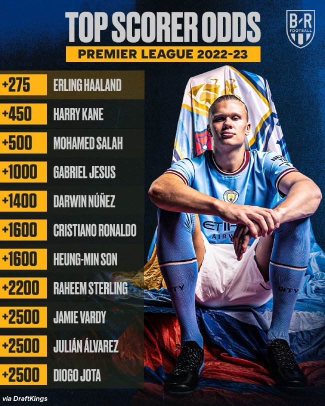 新赛季英超金靴赔率:哈兰德第1凯恩第2 C罗第6