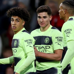 第15分钟,京多安一脚挑传,福登插上扣球时被内托挡出,哈兰德打门击中横梁,阿尔瓦雷斯门前补射得手。