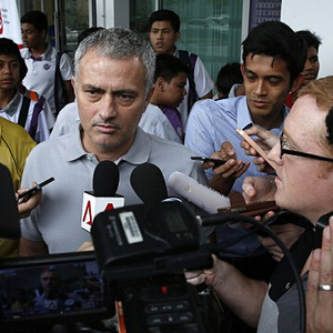 谈到传闻,穆里尼奥说:“我读到过那么多的东西,有一天报纸说我要去中国执教了,另一天说我要去意大利,说我回国际米兰[微博][微博]。现在我在这里,你们也许会说我要去新加坡国家队了。”