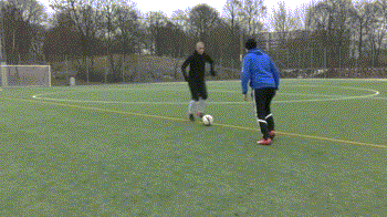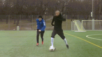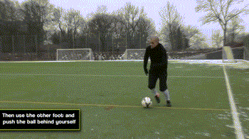 接着用另一只脚将身后的球磕向你要带球的方向,从而完成变向过人。