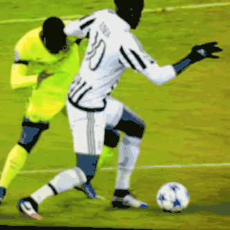 如果你经常看博格巴的比赛,你会发现他的急停变向和灵巧的球员有些不同。后者通常直接利用速度变向摆脱;博格巴则习惯急停后,将球护在身后,然后磕球变向,这样可以有效利用自己的身体。