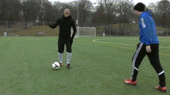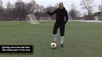 这种抖脚腕的横拨还可以演变成油炸丸子,你一只脚横拨球以后,另一只脚的脚内侧迅速跟上进行2次触球。