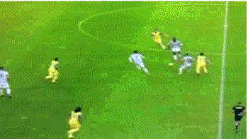 不过需要注意的是,这种急停变向的摆脱不适用于正面突破,除非对面是孤注一掷地上抢。当你身边或者侧后方不远处有防守球员加速对你进行拦截时,这种急停变向就很有效果。