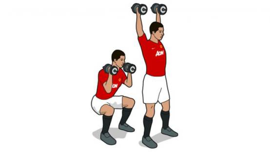 双手持哑铃蹲起:提高带球变向的频率