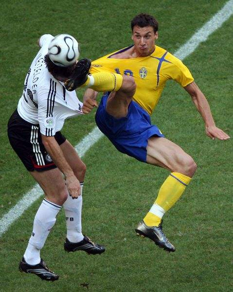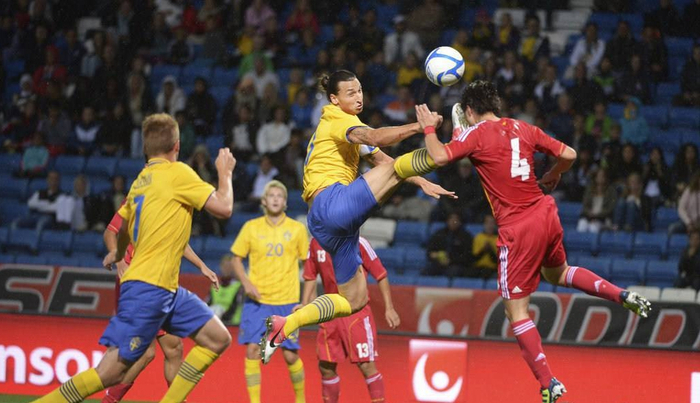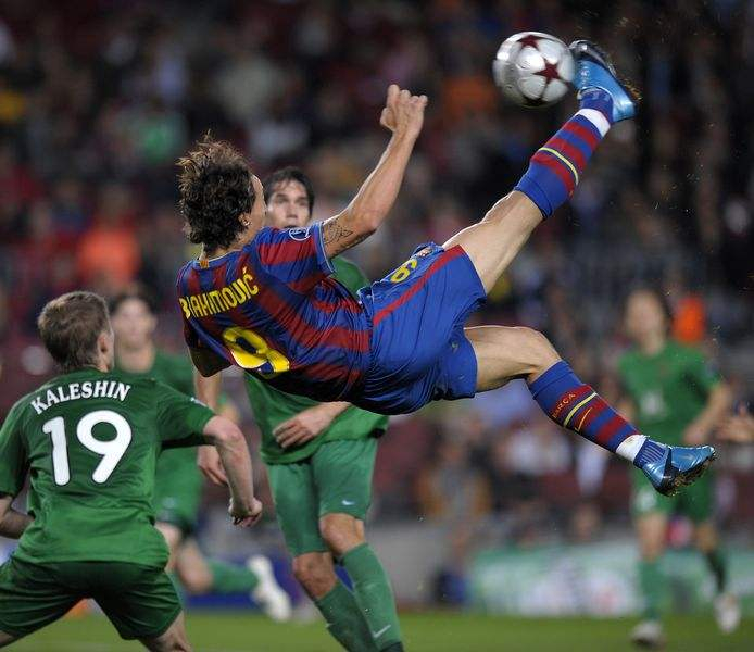 在接受系统的足球训练之前,伊布把大量时间用在了跆拳道训练上,他也十分热爱这项运动,甚至练到了黑带段位。伊布自己也曾表示,跆拳道训练提升了自己的柔韧性,对足球技巧的提升有不小的帮助——这也无怪乎身高达到195cm的伊布,能轻松地完成这样的射门动作: