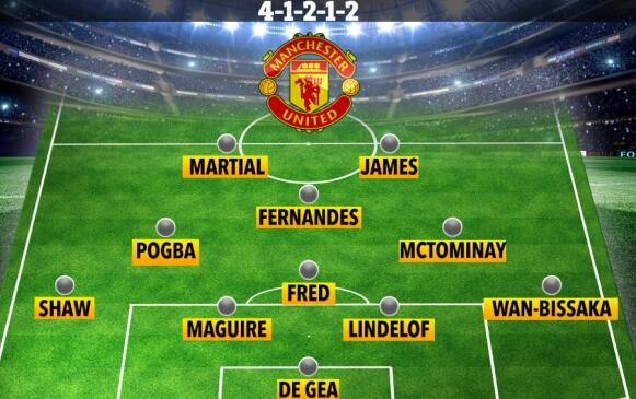 攻击前卫:詹姆斯、布鲁诺-费尔南德斯、马夏尔