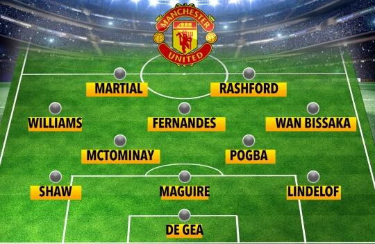 中场:万-比萨卡、麦克托米奈、马蒂奇、威廉姆斯