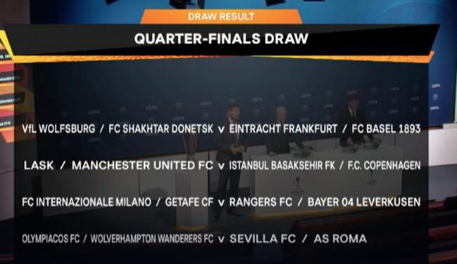 北京时间7月10日19时(瑞士当地时间13时),欧联杯1/4决赛及以后阶段抽签在尼翁欧足联总部进行。曼联或遭遇罗马、塞维利亚、狼队;国际米兰与3支德甲球队抽到另一半区。
