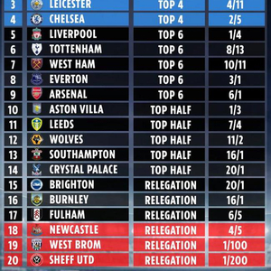 英超最终排名预测:热刺第六 前四名是这些队