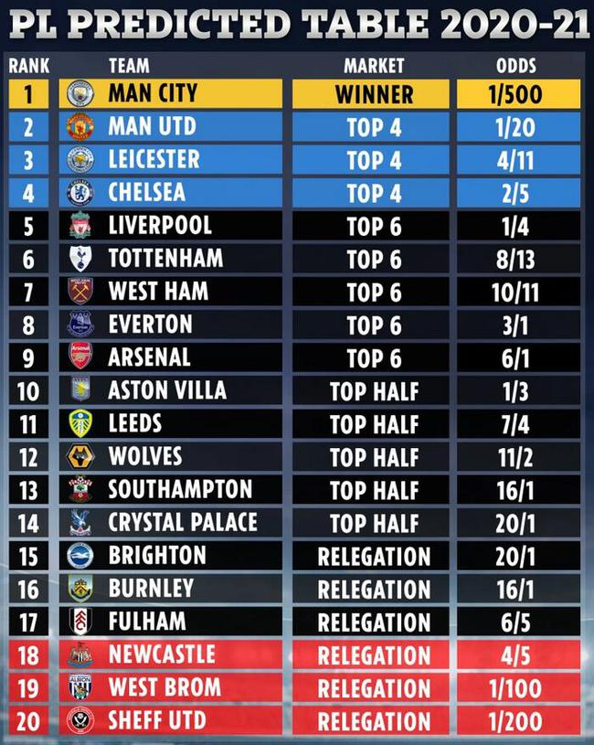曼城夺冠被认为悬念不大,而前四的另外三支球队预计会是曼联、莱斯特城和切尔西。利物浦与热刺分列五六名。
