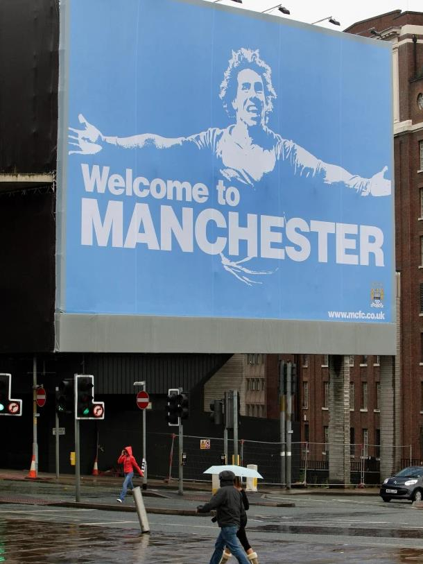其中一幅广告牌,创意和2009年曼城的特维斯广告牌一模一样,太阳报称,这似乎是曼联方面在向曼城炫耀战果。