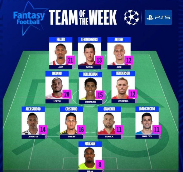 前锋:阿莱(阿贾克斯)、莱万多夫斯基(拜仁慕尼黑)、安东尼(阿贾克斯)