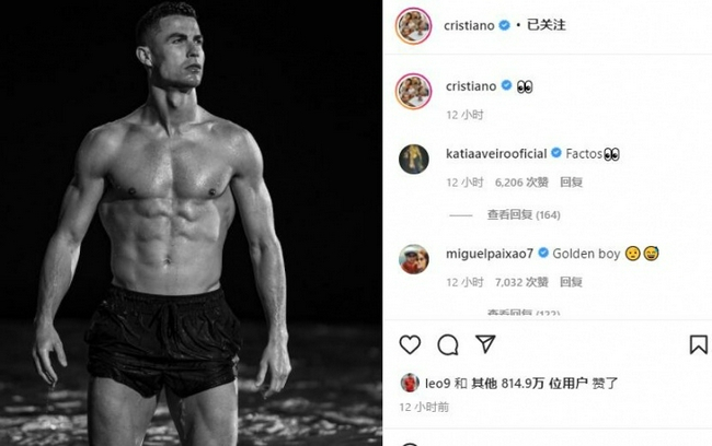 C罗社媒晒完美肌肉 母亲与姐姐点赞留言:Factos