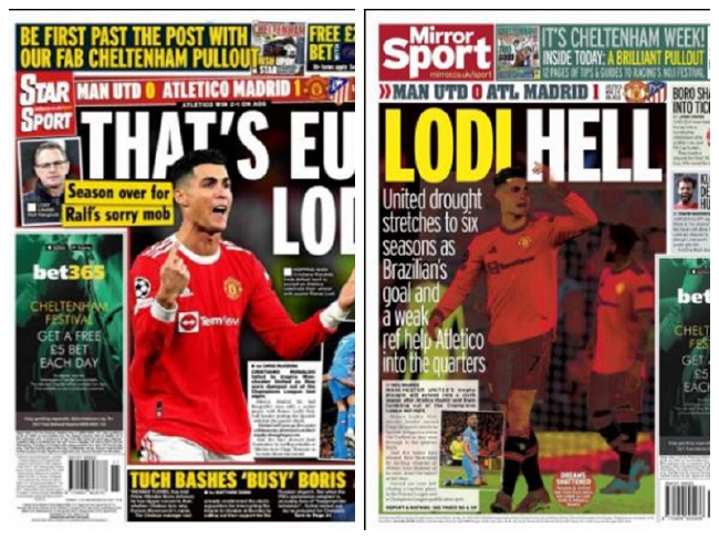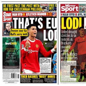 《泰晤士报》认为这是朗尼克拯救自己帅位的最后机会,但他输给了西蒙尼。《泰晤士报》写道:“一个接一个,所有成功的机会都关闭了,对曼联来说,剩下的只是一个不体面的赛季和不可能的完成的争四任务。”