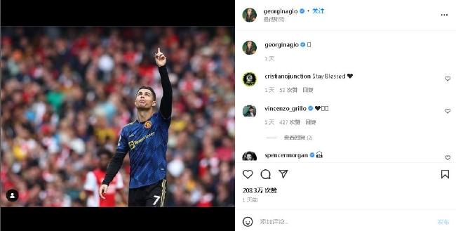 乔治娜发的这张图片,引发了1万个跟帖评论,还有208万个赞。