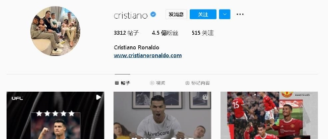 统计显示,C罗的账号已经成为了社交网站INS上粉丝数量最多的账号。