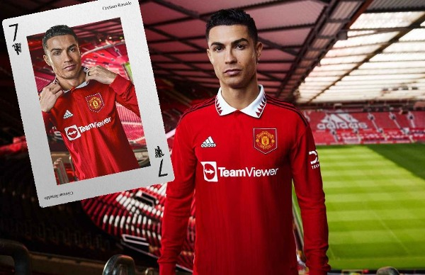 尽管C罗是否留下还不确定,但曼联在展示2022/23赛季新主场球衣时,这位葡萄牙巨星仍然被用作宣传标志。