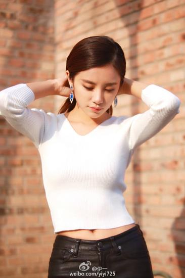 其写真照片中,伊一身着白色紧身毛衣和黑色紧身皮裤,霸气又妩媚。