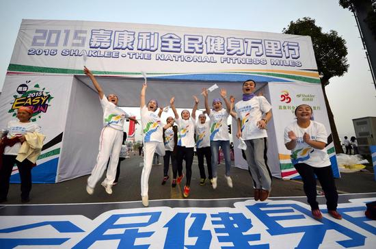 活动还未开始,先到的跑友们就已经进入状态了,首先是嘉康利特约纤奇操美少女团给跑友带来活力四射的舞蹈,接着便是专业教练带领跑友们跑前热身,全民健身强调全民参与的理念,无门槛限制,任何人都能来参加,现场的小朋友们首先活跃了起来,伴随着教练的指导一路蹦蹦跳跳,十分热闹!