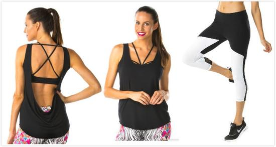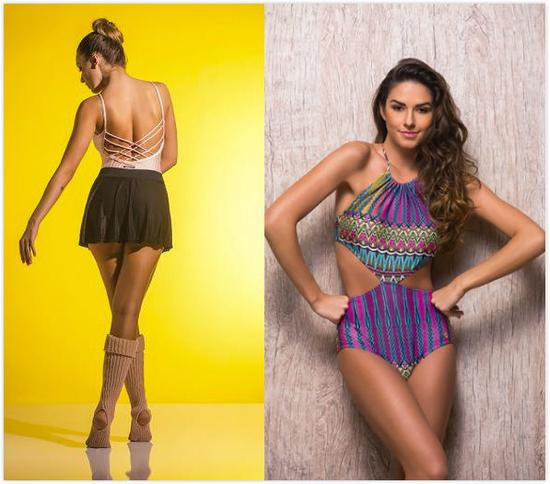 也是突出女性曲线美的设计,白色加黑色线条的那套尤其。还有丰富的热带风情印花。泳装、芭蕾服、瑜伽服、跑步套装等一般的运动装备都涵盖。