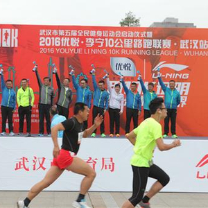 4月24日,2016优悦·李宁10公里路跑联赛(以下简称2016优悦·李宁10K)武汉站的比赛在武汉市汉口江滩公园如约开跑。武汉市体育局局长王沈顺先生、武汉市卫生和计划生育委员会党委书记朱宏斌先生、武汉市体育局副局长陈林祥先生、跳水奥运冠军肖海亮先生、体操奥运冠军程菲女士、体操世锦赛冠军李大双先生、体操奥运冠军李小双先生、李宁公司董事长特别助理兼品牌管理中心总经理张向都先生、非凡中国CEO李麒麟先生、武汉顶津鄂东营业部主管王为利先生共同出席了发令环节,与5000余名跑友一起体验了2016优悦·李宁10K的优悦奔跑之旅。