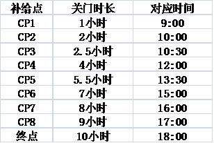 打卡点关门以及对应时间表: