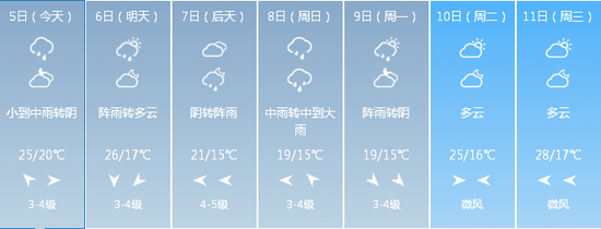 据天气预报显示,比赛期间会有中雨转中到大雨,赛事包已为选手准备了雨衣,但也请自备一些厚衣服,放在存包区,完赛后可以换一下,以防感冒。