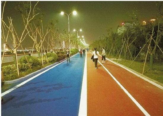 然而更幸福的是,记者昨天打听到这条“中国最美跑道”还将继续延伸——由东信大道往西至华家排灌站也将建沿江景观带,里面同样设有跑道和骑行道,长度4.5公里。建设标准和滨江高新总公司负责的那段一样,跑道是塑胶的,近日即将动工。