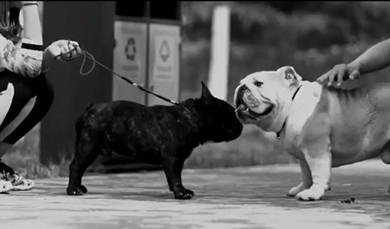 各自在牵着狗狗散步,偶然邂逅,找到了跑步与爱狗的共同话题。