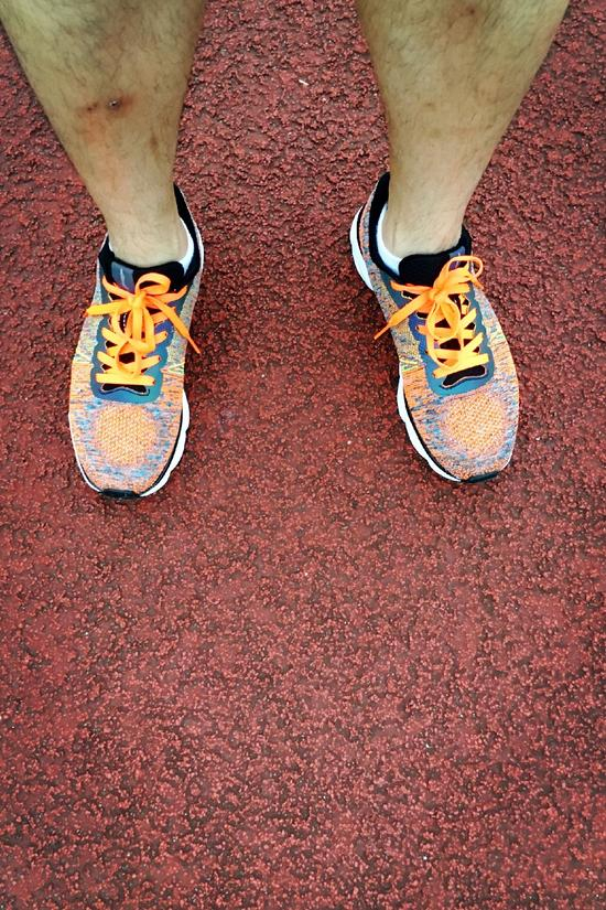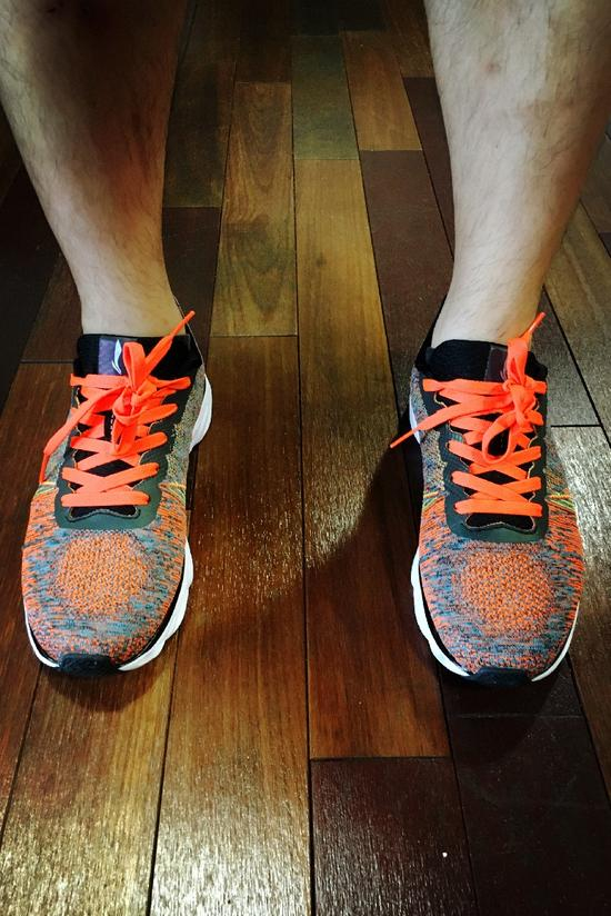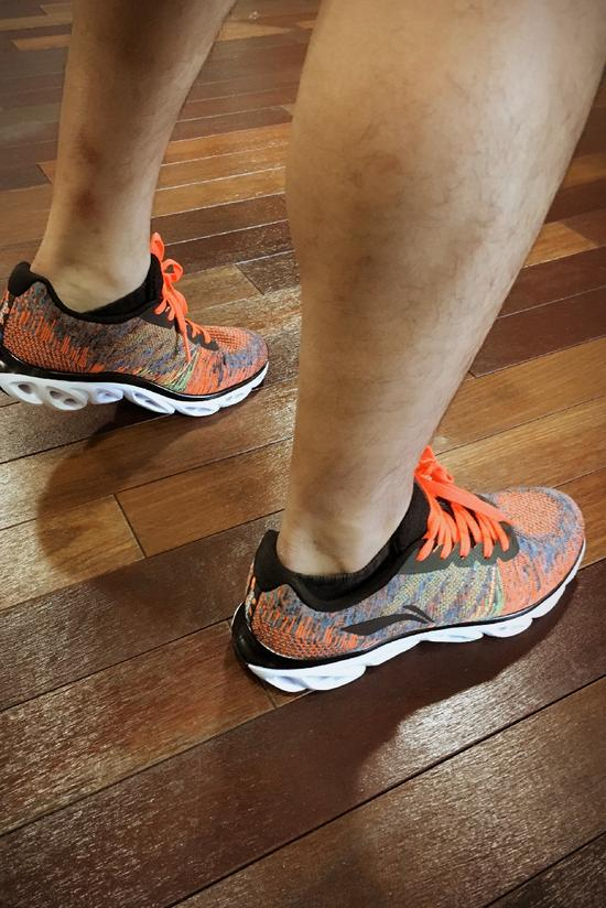 摆拍几张,赶紧上脚,鞋内衬十分顺滑,穿脱弧2016显得非常的轻松,鞋子系上鞋带之后脚包裹得非常的贴合,路跑完全可以完美胜任~