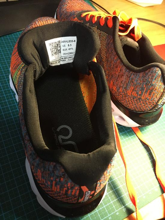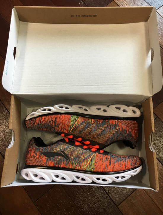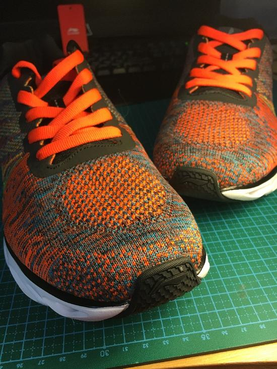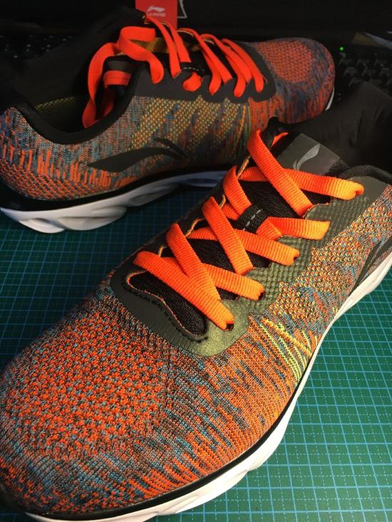 这个夏天,李宁跑步设计团队倾力打造李宁弧2016跑鞋,鞋子开箱第一眼:各个品牌流行的多彩一体织技术的鞋面,在提升舒适度的同时刷新超高颜值;鞋身多处炫酷反光效果设计,真的有广告语说的“让闪耀的双脚陪你追光逐夜”那回事。多彩一体织鞋身搭配白色发泡缓冲大底,视觉冲击力十足,荧光橙鞋带也让人亮瞎了眼。首先整体论外观,个人认为绝对称得上有好感度的一款。