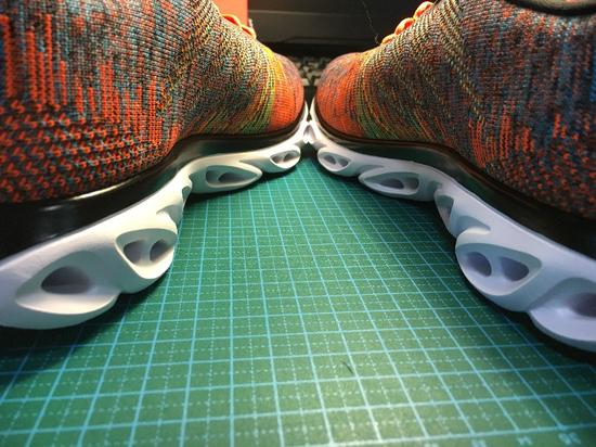 传说中的中底减震科技(脊柱状仿生设计):李宁弧脊柱状仿生设计,利用在运动中的形变和自我恢复的全过程,充分吸收落地瞬间的冲击力, 大幅提升稳定性能,有效降低运动损伤的几率。