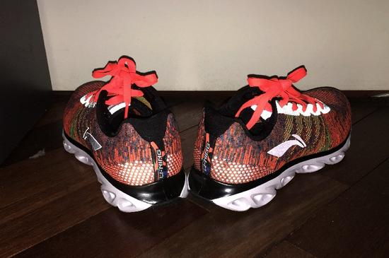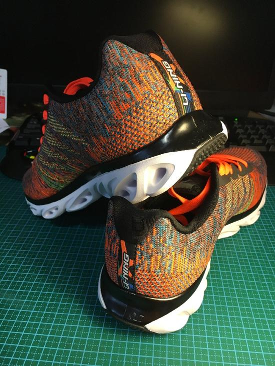 李宁弧2016跑鞋帮面采用多彩一体织技术, 在保留传统一体织技术鞋面良好包裹性的同时,还突破性地采用了多色纱线织造技术,跑鞋不同区域的有不同的功能诉求 。同时一体织技术鞋面的确提供了非常良好的包裹和动态贴合感,透气性能优越,毕竟是编织透气网布。上脚没有感觉闷热。