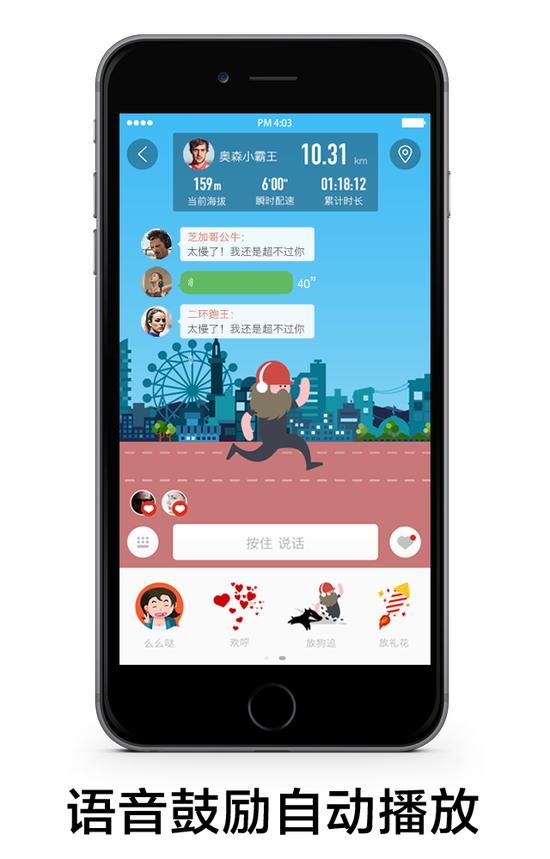 阿甘跑步鲜明的运动+社交的特色让库克眼前一亮。邹涛首先介绍跑者在跑步过程中独孤、难以坚持下来的痛点,随后将阿甘跑步为了解决这一痛点开创性研发出的跑中社交呈现在大屏幕上。