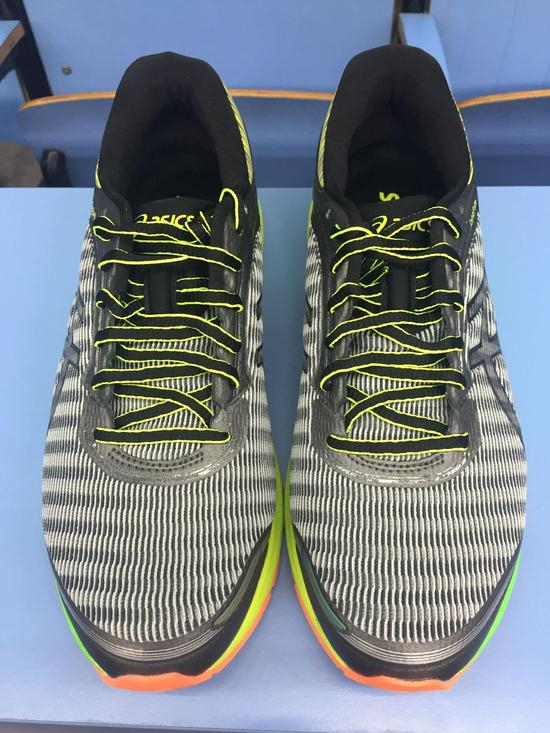 ASICS DynaFlyte一改一直以来亚瑟士跑鞋“肌肉型”的外观,取而代之的是全新的外观设计风格,让人眼前一亮。我拿到的是一款鞋面灰色鞋底黄色的配色,配色很有活力,十分耐看。