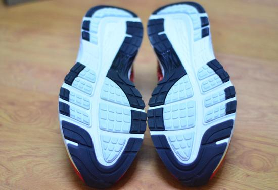 FlyteFoam并不是中底采用的唯一一种材料,对于亚瑟士来说,Gel胶永远都是经典,就像气垫之于耐克一样,DynaFlyted 在中底的后掌依然增加了Gel胶,只不过在FlyteFoam的光圈下,显得不再那么耀眼。此外,DynaFlyted 在中前掌的外侧使用了SOLYTE材料,这三种科技材料的组合,是鞋子整体轻质的秘密所在。