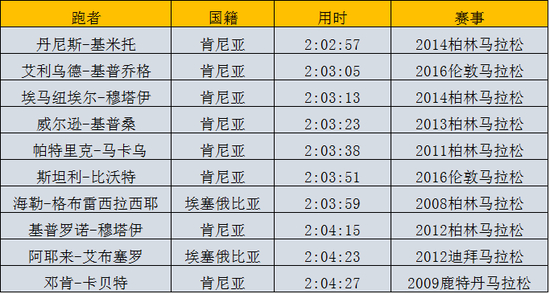 不仅在个人成绩上,柏林保持着这项最快纪录,即使把计算对象拓展到赛事历史中最快10人的平均成绩,别的马拉松也无法出其左右。今年伦敦马拉松赛中,基普乔格夺冠的成绩只比历史纪录差了7秒,他创造了伦马的赛会成绩,同时也让伦马成为了仅次于柏马的第二快马拉松。
