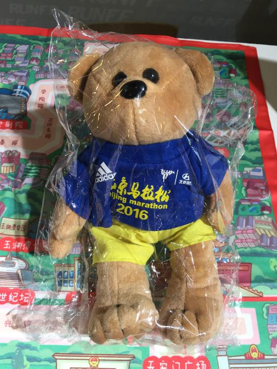 博览会上还出现了许多特许商品,但售卖的地方并不显眼,只在展区最北侧的一角,特许产品主要有小熊公仔,空顶帽,赛道地图方巾,照片框架和北马3万跑者姓名海报。这是所有的五件商品,价格都相对适中,跑者也都愿意自掏腰包买来纪念或者送人。但这只是有限的北马周边产品,也是一块有待挖掘的大市场。