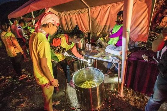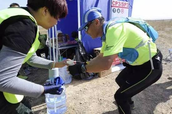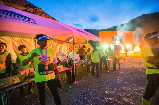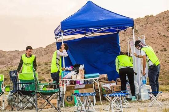在漫长的比赛中,十个补给点的工作人员始终坚守着,把最高的热情和最专业的服务献给跑者们,让他们疲惫的身心得到最大限度的缓解。