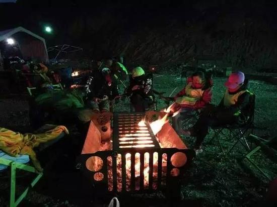时间已经进入第二天凌晨,100公里个人组的跑者们陆陆续续完成比赛。夜晚山里的温度极低,工作人员围着篝火取暖,每当有选手抵达终点,大家就会立刻起来到赛道两边,给选手们报以热烈的掌声,为他们的坚持不懈喝彩。