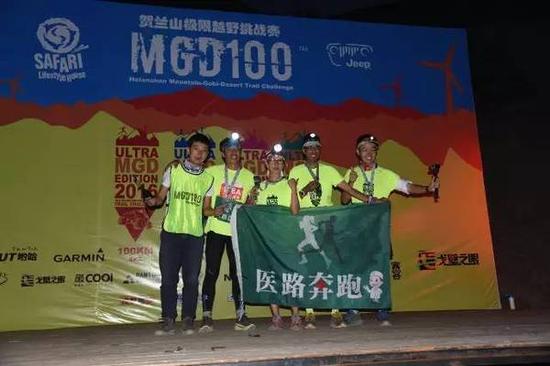 来自医路奔跑的4名医生组成4X4战队,为赛事提供医疗保障的同时,医生们也用强大的实力,勇夺100公里4X4接力组冠军。