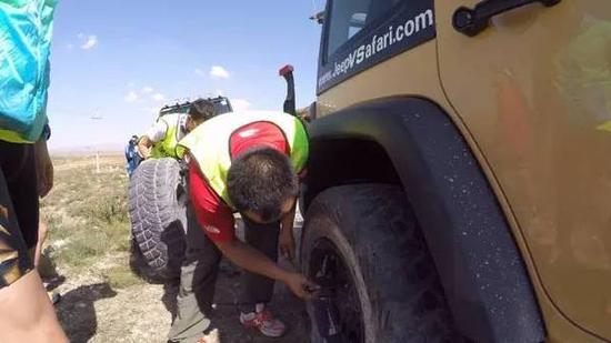 也许是受到了比赛感染,马儿兴奋过头,在两个接力点中爆胎了,如果不能提前到达交棒点后果不堪设想。好在之后赶来的另一辆牧马人伸出援手,用最短的时间帮助换好备胎,下一棒选手则乘坐之前的一辆牧马人率先赶往接力点。在比赛过程中,Jeep车队把相互协作的精神发挥到极致。