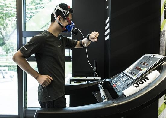 8月,酷夏,上海耐克世纪公园跑步体验店。周兆平在工作人员的帮助下参加了 VO2 MAX 即最大摄氧量专业测试。佩戴呼吸机、定时有氧运动后,周兆平完成了测试,头上渗出微微的汗珠。“我的成绩怎么样?”周兆平关切地问道。