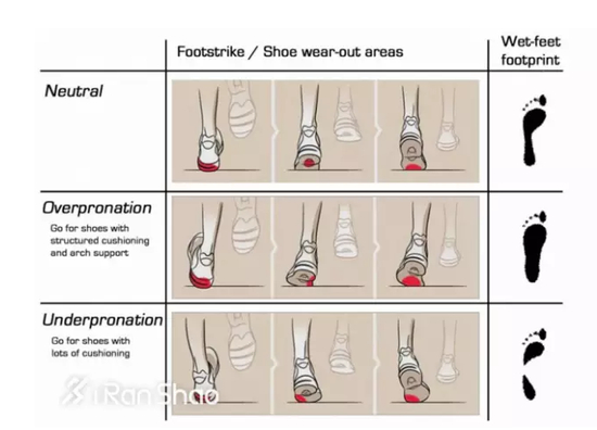 脚型正常的人穿缓冲/减震跑鞋就可以,顾名思义,缓冲款跑鞋就是给双脚提供足够的缓冲,减少落地时的冲击力。而脚型不太“正常”的人则可能需要额外的支撑,因为这类跑者落地时姿势有“问题”,支撑/稳定款跑鞋会额外通过物理结构/不同密度的材质来减少“问题”。最常见的是足弓塌陷或者扁平足的人,他们的双脚就是过度内旋的(外翻)。