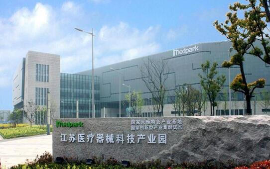 江苏医疗器械科技产业园:产业园坐落于苏州高新区科技城内,东临绕城高速,南接玉屏山,西拥万顷太湖,北依太湖大道,交通便利,风景优美。总规划占地约2平方公里,分为南部1平方公里科研创新区、权威检测和评估机构区、综合配套区,北部1平方公里产业示范区。产业园以生物医学工程技术和先进医疗设备产业化为核心,引进国家级权威检测和评估机构,建设高端医疗产业服务平台,聚集高科技医疗器械企业,培养高级研发人才,产生集群效应,打造长三角首屈一指的国家级医疗器械产业集聚区。