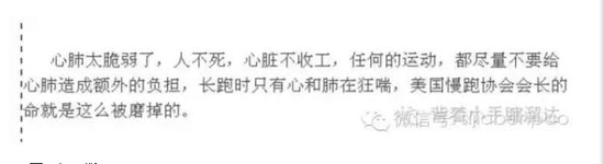 短短五十字提出三个论点:一、运动不能为心肺造成负担;二、长跑给心肺造成了巨大的负担;三、有人死了。