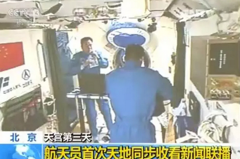 2016年10月21日晚上,中央电视台《新闻联播》首次在太空播出,景海鹏、陈冬两名航天员在“天宫二号”实验舱内,首次天地同步收看到了《新闻联播》节目。