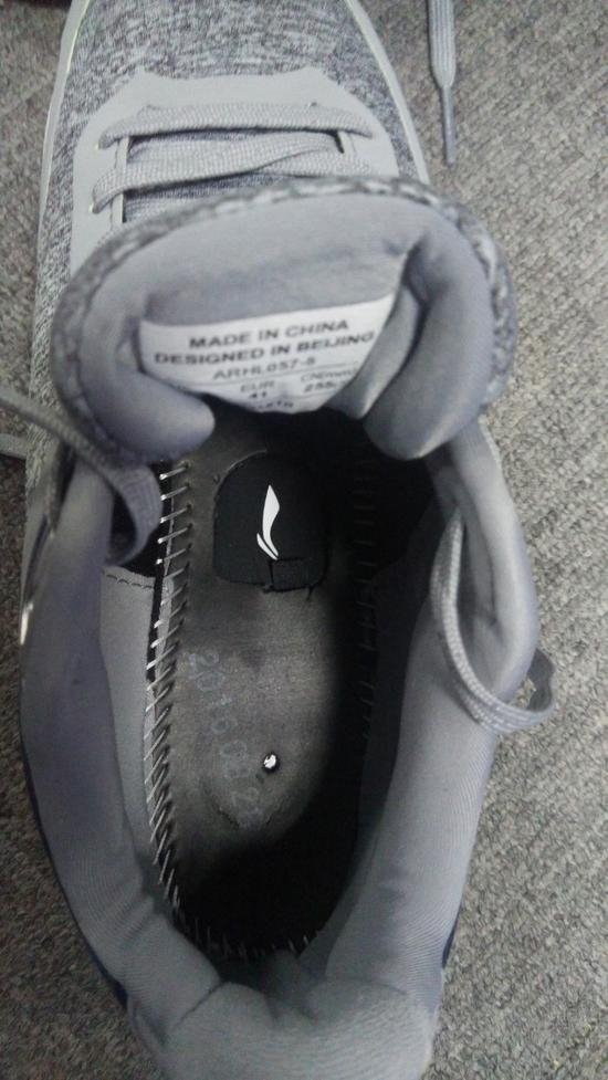 介绍了云三跑鞋的大致外观,接下来要吐槽一下固定鞋舌的这个穿孔,它居然。。。。。居然跟李宁的logo不是中心对齐的